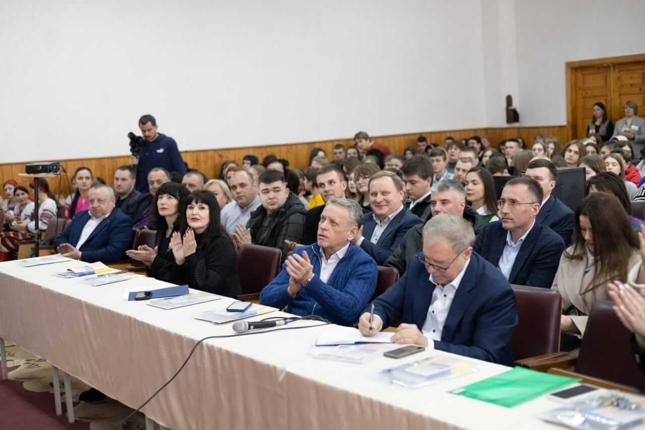 Голова Громадського об’єднання «МИ-ВІННИЧАНИ» Валерій Коровій зазначив, що для розвитку інтелектуального потенціалу талановитої молоді, підтримки творчого покоління науково-активної молоді в аграрній науці, конкурентоспроможної на міжнародному ринку праці, стимулювання їх інтересу до дослідницької роботи проводився конкурс «Оптимальна модель організації аграрного виробництва». Він нагородив переможців: команду Могилів-Подільського технолого-економічного фахового коледжу ВНАУ, Ладижинського фахового коледжу ВНАУ, Чернятинського фахового коледжу ВНАУ, факультет менеджменту та права, інженерно-технологічний факультет, факультет екології, лісового та садово-паркового господарства, кафедри аграрного менеджменту та маркетингу Вінницького національного аграрного університету. Переможці отримали фінансову підтримку в розмірі 40 тис.грн. Перед присутніми виступив голова Наглядової ради фонду «МХП – Громаді», перший заступник голови правління «Миронівський хлібопродукт» Юрій Мельник, який наголосив, що незважаючи на непрості умови сьогодення, необхідно дбати про розвиток сільського господарства, науки, освіти, та
