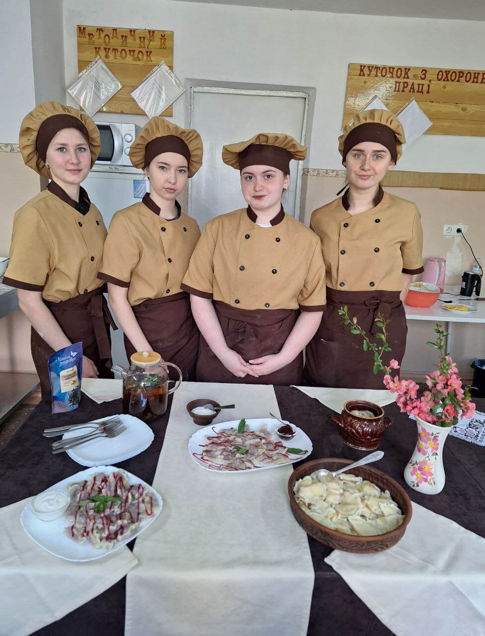Студенти групи ВХП 42/9 Приходько Діана та Калинчук Марія продемонстрували приготування вареників із зварного тіста. Не всім вдається приготувати тонке тісто, щоб не порвалося під час ліплення і не розірвалося