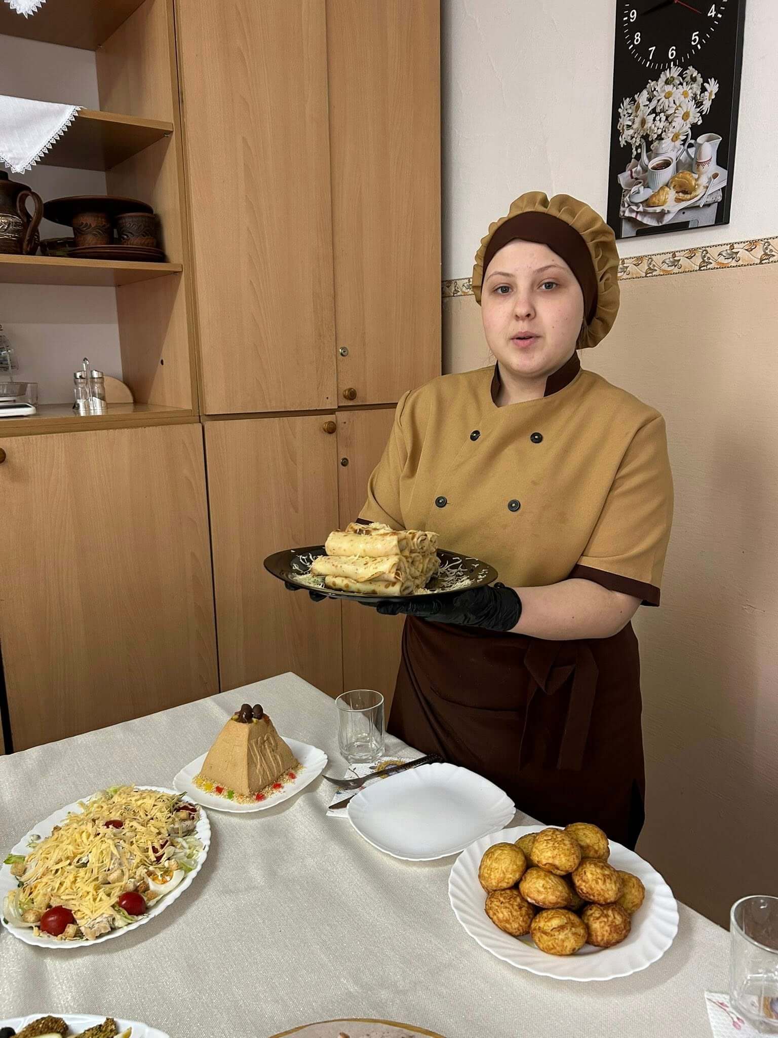 В системі формування практичних професійних вмінь та навичок фахового молодшого бакалавра зі спеціальності 181 ХАРЧОВІ ТЕХНОЛОГІЇ за ОПП «Виробництво харчової продукції» важливе значення має навчальна практика для здобуття робітничої кваліфікації кухаря. Використовуючі сучасні техніки та оригінальні рецептури, студенти, під керівництвом майстрів виробничого навчання Байлюк Людмили та Бею Ірини, здобувають професійні вміння та навички з визначення якості сировини та напівфабрикатів, вміння складати технологічні карти та алгоритми приготування страв згідно нормативно-технічної документації, вміння проводити процеси первинної кулінарної обробки сировини, готувати напівфабрикати, страви, кулінарні вироби з дотриманням умов технологічного процесу і норм закладання сировини, а також раціонально використовувати сировину, харчові відходи, обладнання та інвентар.