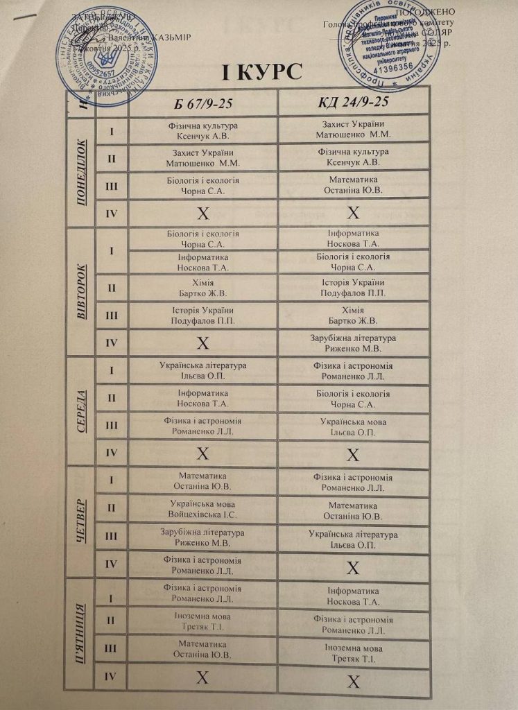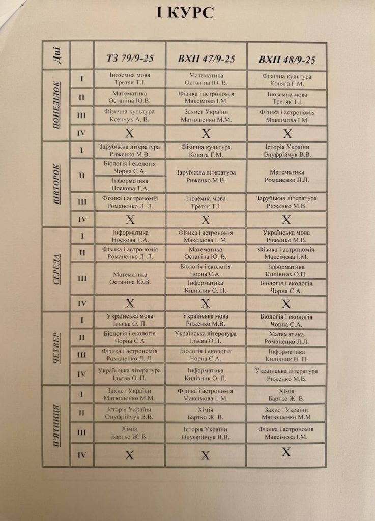 І курс ТЗ 79/9-25, ВХП 47/9-25, ВХП 48/9-25