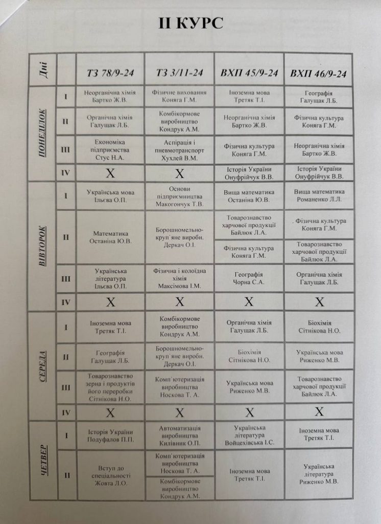ІІ курс ТЗ78/9-24, ТЗ3/11-24, ВХП45/9-24, ВХП46/9-24