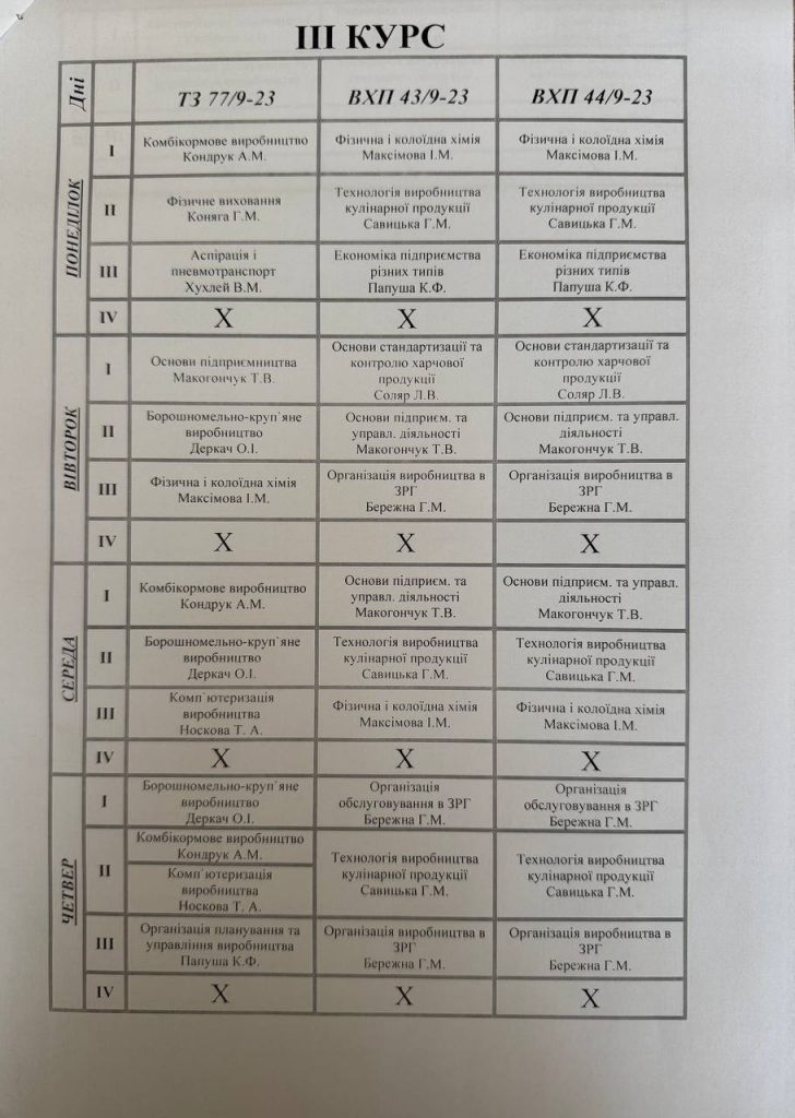 ІІІ курс ТЗ 77/9-23, ВХП 43/9-23, ВХП 44/9-23