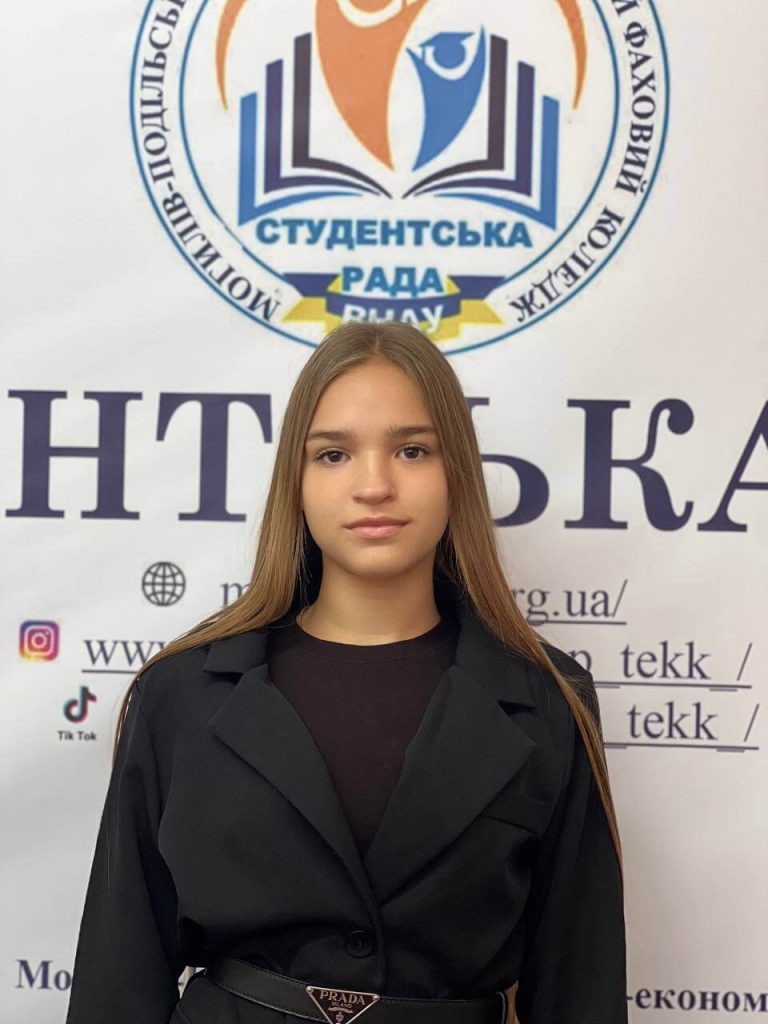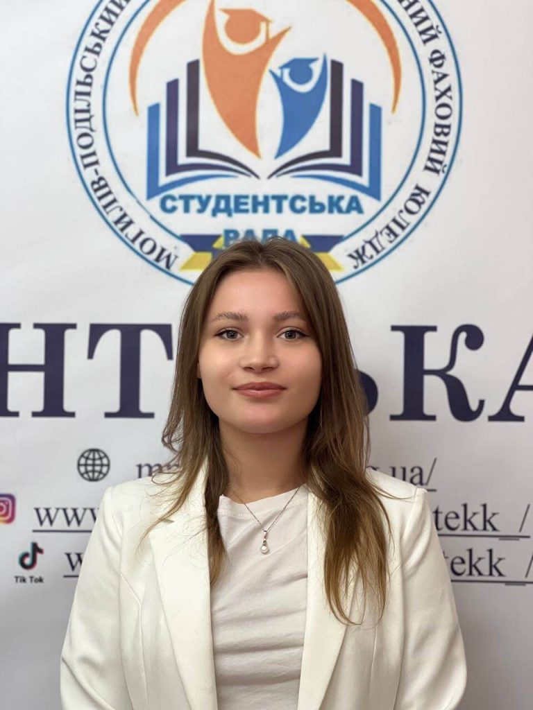 Голова студентської ради МЕЛЬНИК Богдана Василівна Заступник голови студентської ради ДИШКАНТ Вероніка Віталіївна Секретар студентської ради ВОВЧУК Катерина Юріївна Голова культурно-мистецького сектору КАСЬЯНОВА Владислава Володимирівна Заступник голови культурно-мистецького сектору ГРИМЧАК Валерія Олегівна Прес-секретар КРАСНЯК Катерина Віталіївна Заступник прес-секретаря ЧЕРНЯТИНСЬКА Віолетта Миколаївна Голова соціально-побутового сектору ГЛАДИШЕВА Катерина Андріївна Заступник голови соціально-побутового сектору МАЙСТРУК Віра Віталіївна Голова сектору спорту і здоров’я ГУРА Тимур Сергійович Заступник голови сектору спорту і здоров’я ВОЛКОВ Роман Вікторович Голова академічного сектору ГРИМЧАК Анастасія Констянтинівна Заступник голови академічного сектору КИЛИМНИК Ангеліна Олександрівна