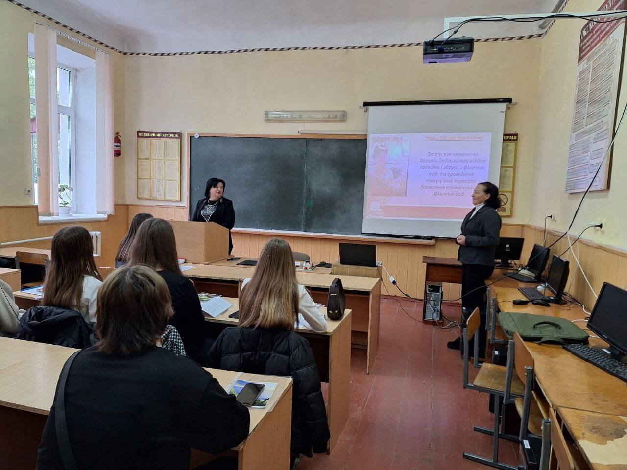 перевірок управління оподаткування фізичних осіб ГУ ДПС у Вінницькій області, яка розповіла студентам про податки, які сплачують до бюджету та відповіла на запитання студентів.